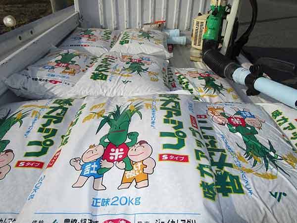 【10aに700ℓ入りトン袋を1袋】撒く樋口 5298 トン袋2つ 八幡 5545 トン袋2つ八幡 5539トン袋1つ。