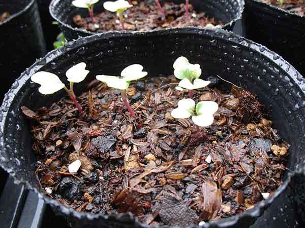 コ-ルラビの苗が土を押し上げて顔 出してきました。