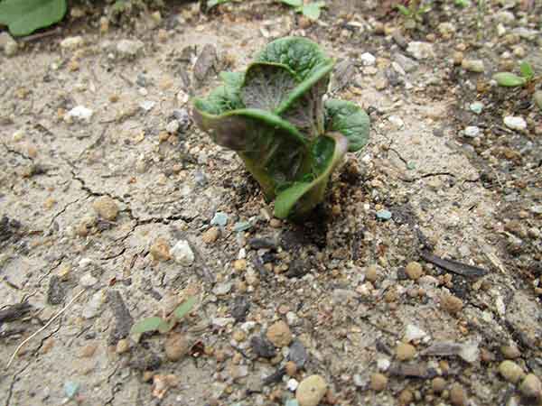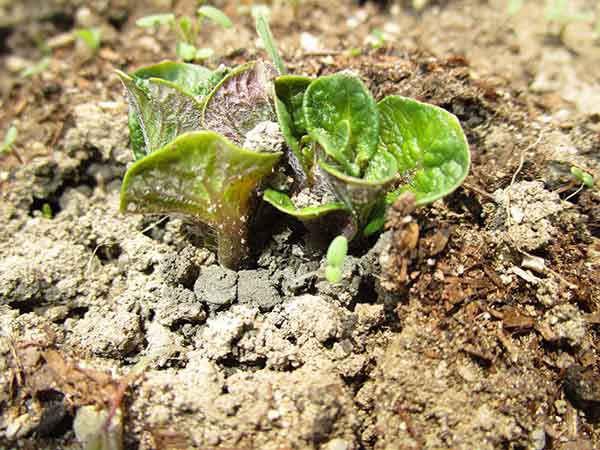 デストロイヤ-植えて半月 土を押し上げ苗さんが顔を出してきました。